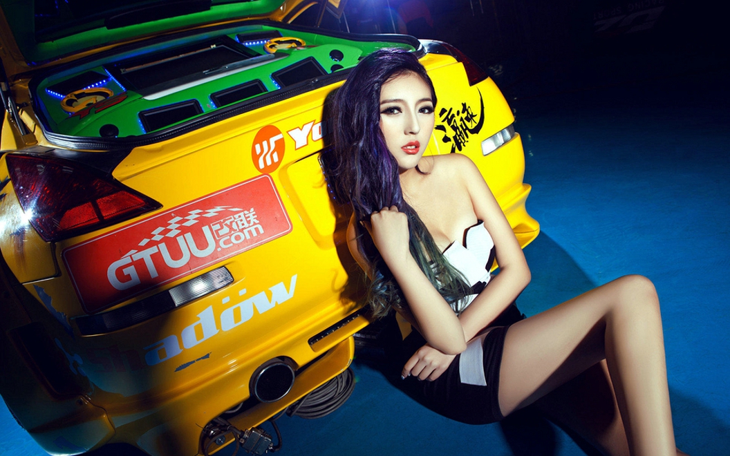 改装车惹火冷艳美女车模美腿高跟鞋火辣妖艳销魂诱人写真